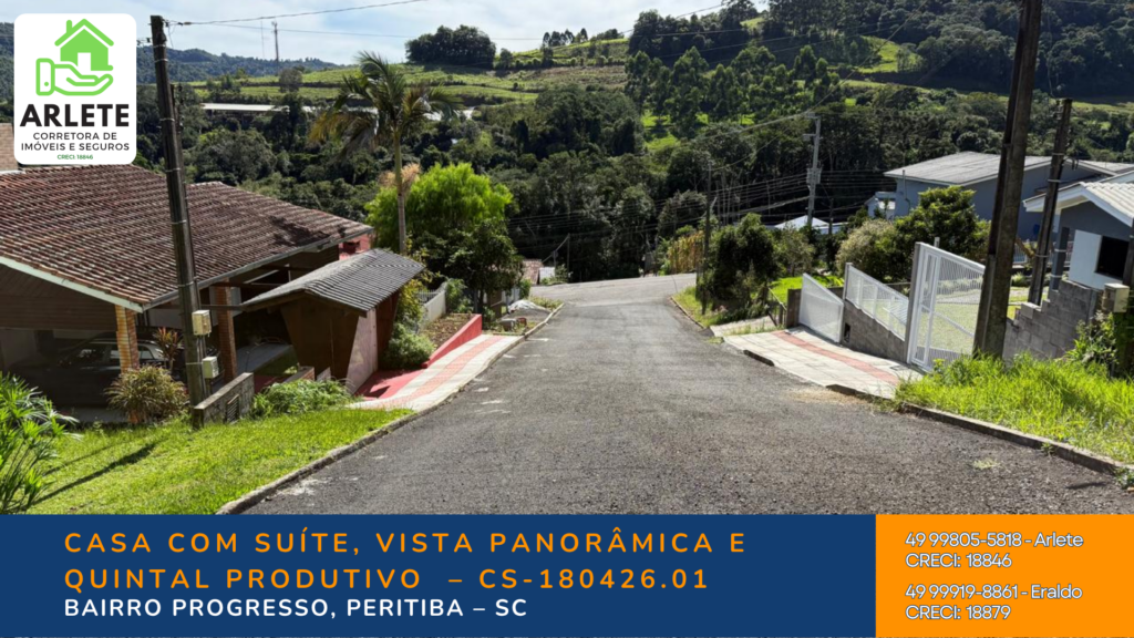 Se você busca um imóvel que une a solidez da alvenaria com o bem-estar do contato direto com o verde, esta é a oportunidade ideal. Localizada em um ponto privilegiado do Bairro Progresso, em Peritiba/SC, esta residência em final de rua garante o máximo de privacidade e uma vizinhança tranquila.